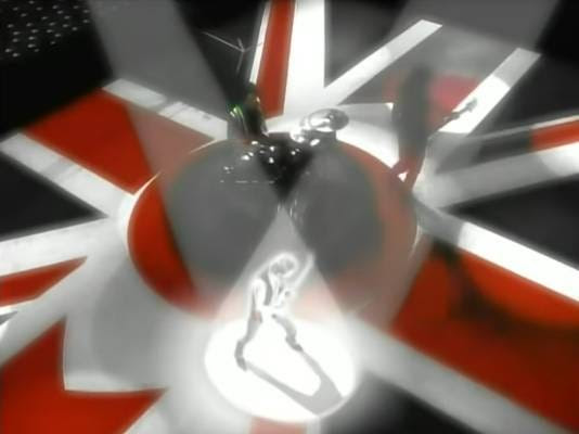 Throughout the video, Def Leppard appear to be playing on a vast stage with a Union Jack carpet.