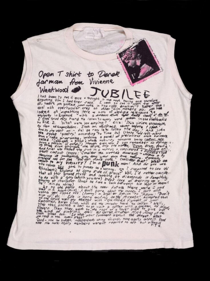 Vivienne Westwood hated Jubilee so much that she wrote an angry letter to Jarman, accusing him of being pretentious, anti-punk, and having “a gay (which you are) boy’s love of dressing up & playing at charades”. She then screen-printed this letter onto t-shirts and sold them in her shop. It was a fun time.